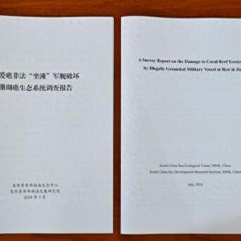 7月8日,自然资源部南海生态中心、自然资源部南海发展研究院联合发布《仁爱礁非法“坐滩”军舰破坏珊瑚礁生态系统调查报告》。报告列举大量详细数据后指出,菲律宾当局为一己私利,费尽心思利用军舰长期非法“坐滩”,已严重损害仁爱礁生态系统多样性、稳定性和持续性。